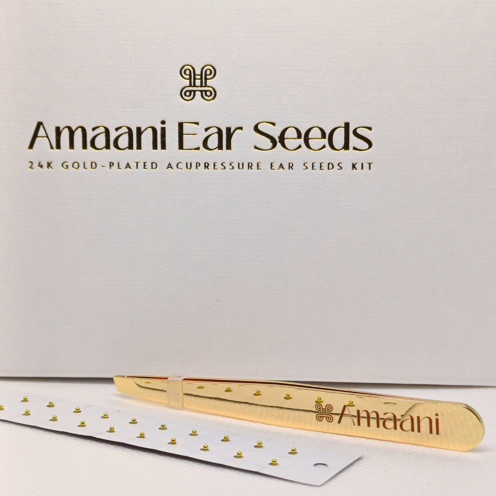2 folii cu cate 20 de ear seeds placate cu aur de 24k – La fel de elegante si eficiente, ear seed-urile din aur de 24k iti ofera acel look chic, dar mai ales o experienta de ear seeding premium. Aceste margelute aurite sunt perfecte pentru a stimula punctele de presiune de pe ureche, pentru a te ajuta sa iti mentii calmul si sa ramai echilibrata chiar si in cele mai agitate zile.